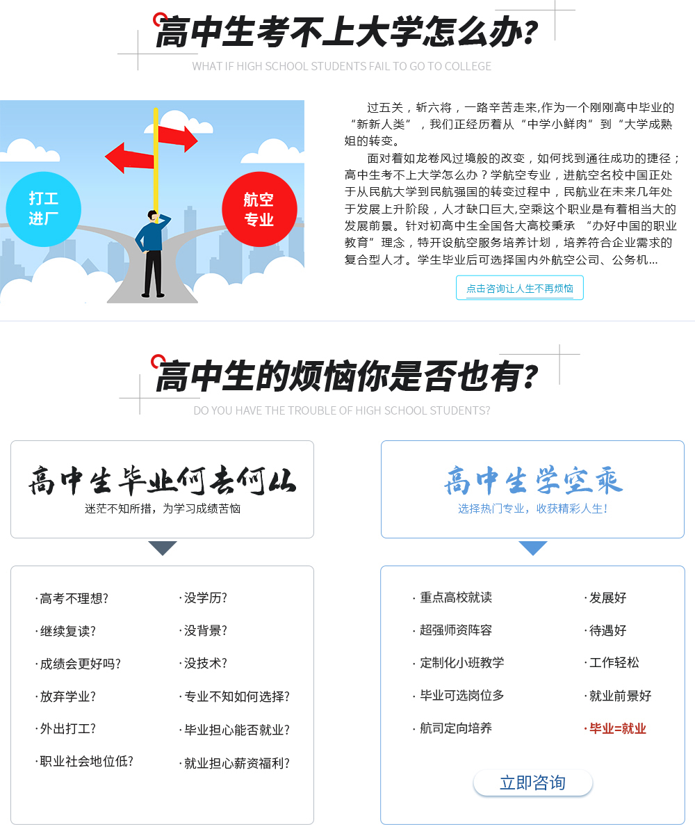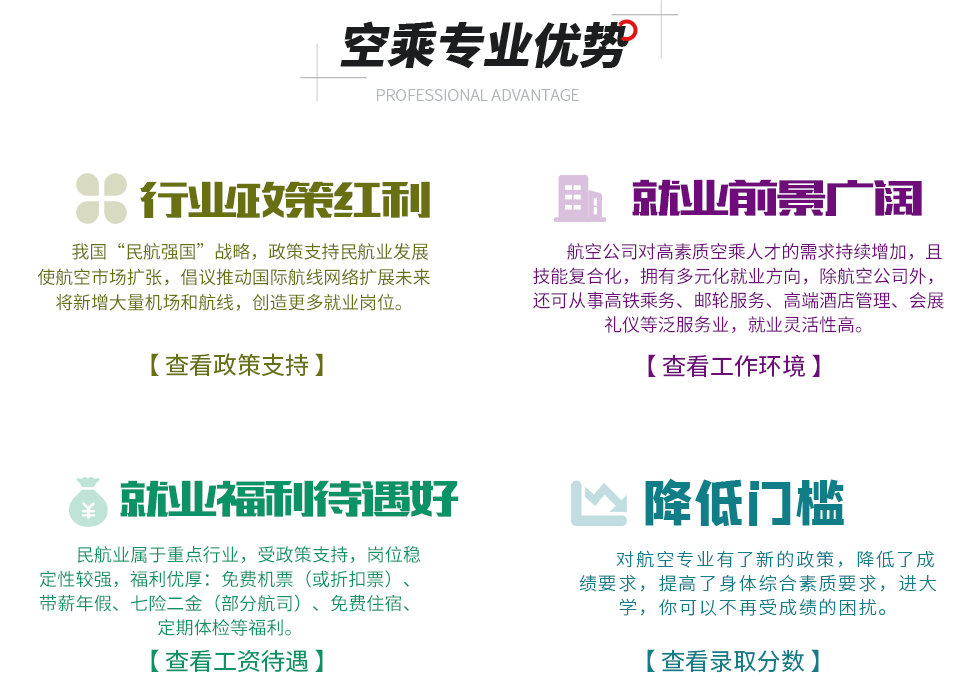 学校优势: 立足高校背景,培养航企文化;专业训练设施完善,定期航空公司实训;与航空企业无缝链接的合作关系,技能学历双丰收
