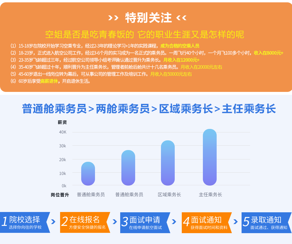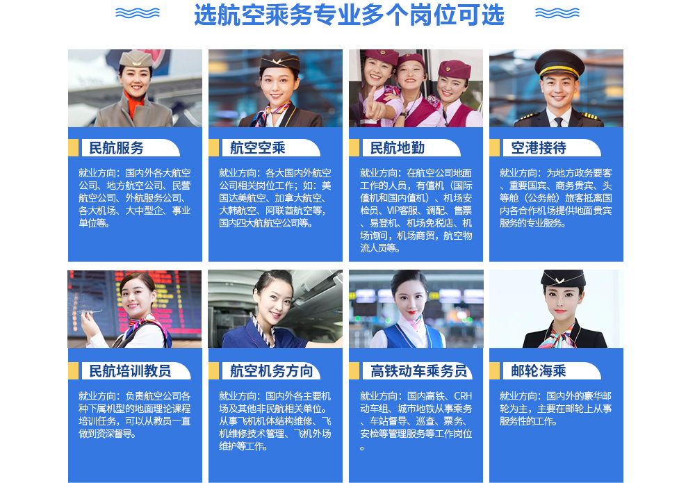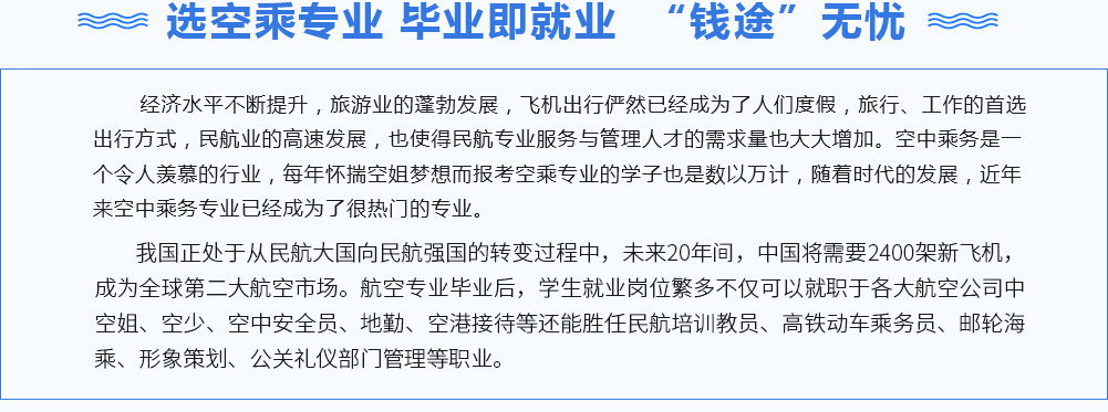 专业设置: 航空服务精英班、航空服务基础班
