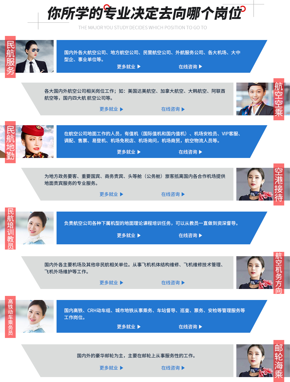 专业设置: 英语(航空服务方向)、英语(航空服务基础班)
